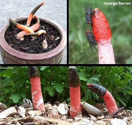 蛇頭菌學(xué)名為“Mutinus Caninus”,可以稱(chēng)得上是最丑陋的菌類(lèi)。蛇頭菌菌柄呈圓柱形,菌蓋呈鮮紅色,菌蓋頂端長(zhǎng)有惡臭氣味的粘稠狀孢子。