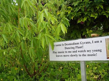 跳舞草學(xué)名為“Desmodium Gyrans”。這種植物最奇異的特點(diǎn)就是葉片會(huì)隨溫度變化或音樂(lè)伴奏而上下舞動(dòng),因此得名“跳舞草”。當(dāng)跳舞草受到陽(yáng)光直射時(shí)或是處于較溫暖的環(huán)境下,它們就會(huì)快速地舞動(dòng)自己的葉子。當(dāng)音樂(lè)響起時(shí),跳舞草也會(huì)做出一些反應(yīng)。在跳舞草每一片葉子的根部,都有一個(gè)相當(dāng)于鉸鏈裝置的結(jié)構(gòu),葉子可以圍繞它沿著橢圓形路徑旋轉(zhuǎn)。