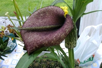 尸花學(xué)名為“Amorphophallus titanum”,有時(shí)也被稱(chēng)為“泰坦魔芋花”。尸花是世界上體型最大的花,也是氣味最臭的花,原產(chǎn)于印度尼西亞蘇門(mén)答臘島的熱帶雨林中。它們會(huì)釋放出一種腐爛的尸體的味道,這也是“尸花”名稱(chēng)的來(lái)源。它們散發(fā)臭味也是為了吸引昆蟲(chóng)前來(lái)傳粉。這種花的葉結(jié)構(gòu)高度最高可達(dá)20英尺(約合6.1米),寬度最高可達(dá)16英尺(約合4.9米)。