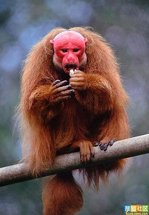 赤禿猴 這種猿擁有令人震驚的紅腦袋,因此南美洲的人給它起了個(gè)有趣的綽號“英國猴”,這是為了紀(jì)念第一批前往它們的國土,被太陽曬的滿臉通紅的英國人。 發(fā)現(xiàn)地 在巴西、秘魯和哥倫比亞森林深處都能找到赤禿猴。“暗礁和雨林”(www.reefandrainforest.co.uk)可以組織前往巴西的偏遠(yuǎn)保護(hù)區(qū)——馬米拉瓦可持續(xù)發(fā)展保護(hù)區(qū)的旅行,前往那里的游客如果幸運(yùn)的話,能夠看到赤禿猴。在附近地區(qū)發(fā)現(xiàn)的其他動(dòng)物包括三趾樹懶、黑松鼠猴和粉河豚。